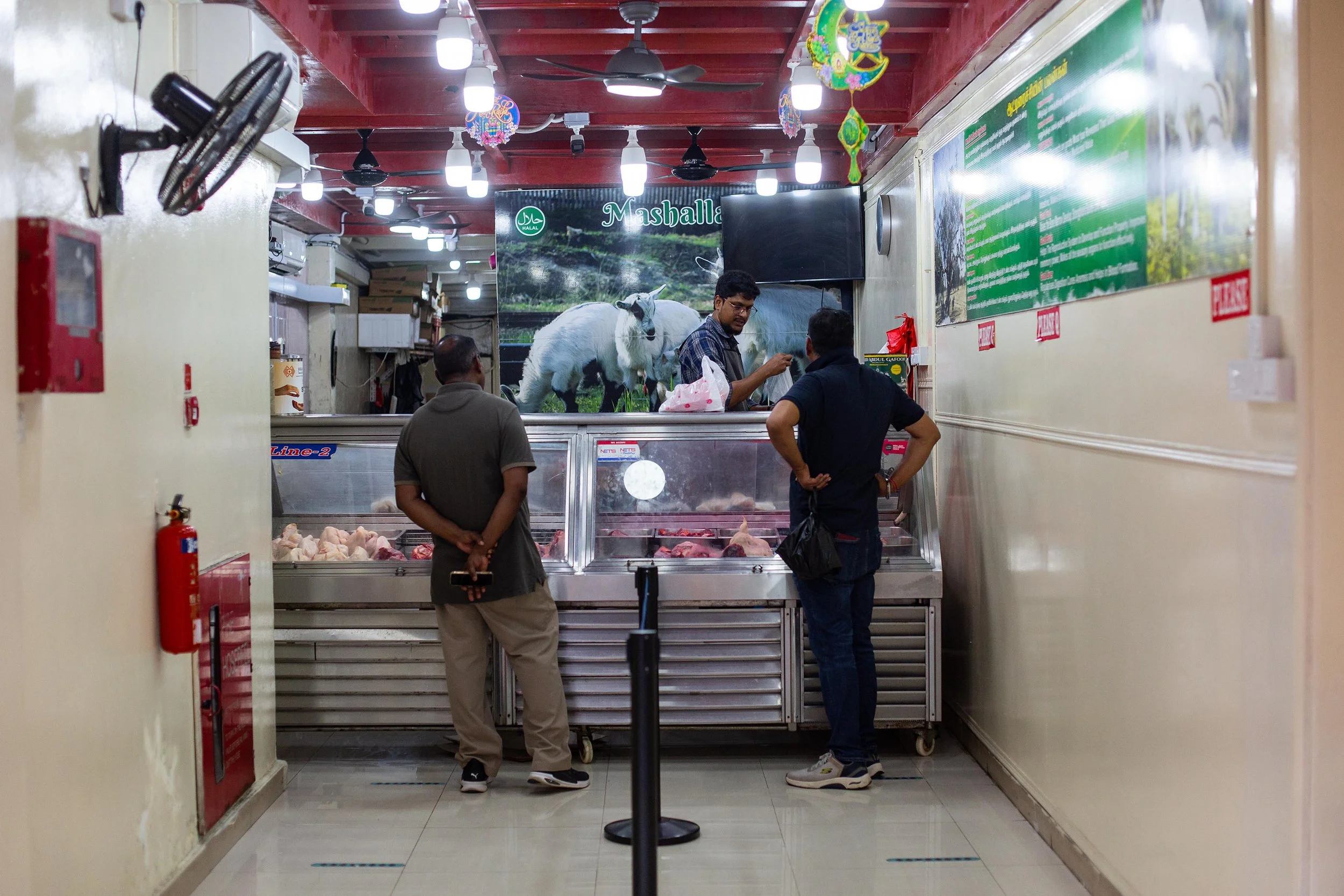 I had walked past this butcher shop several times but never stopped. On this occasion, I noticed three men inside and quickly framed a symmetrical shot. Later, in Lightroom, I realized how beautifully the red color popped out, from the ceiling to the side of the property. The bright bulbs provided the shop more energy and customers felt more welcoming to make purchase.