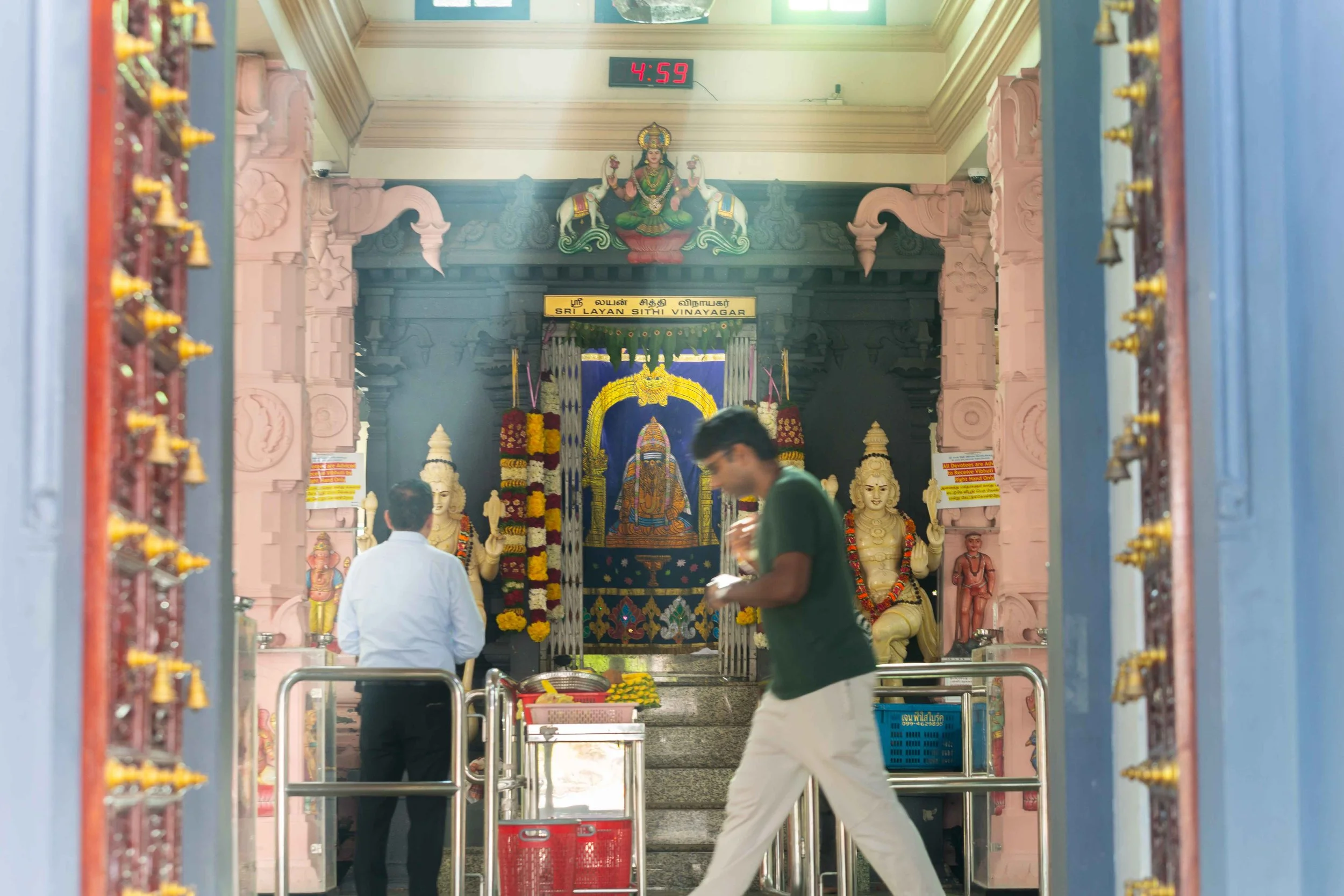 She warmly invited me in to check out the temple, probably assuming I was a tourist exploring Singapore’s cultural side. While we chatted, my eyes kept drifting back to the ongoing scene inside. Devotees were walking in a slow, circular motion. Then, suddenly, a ray of light pierced through the window. I told her how beautiful it looked, and she smiled, saying I was lucky — that kind of light doesn’t happen every day, especially with Singapore’s often cloudy skies.