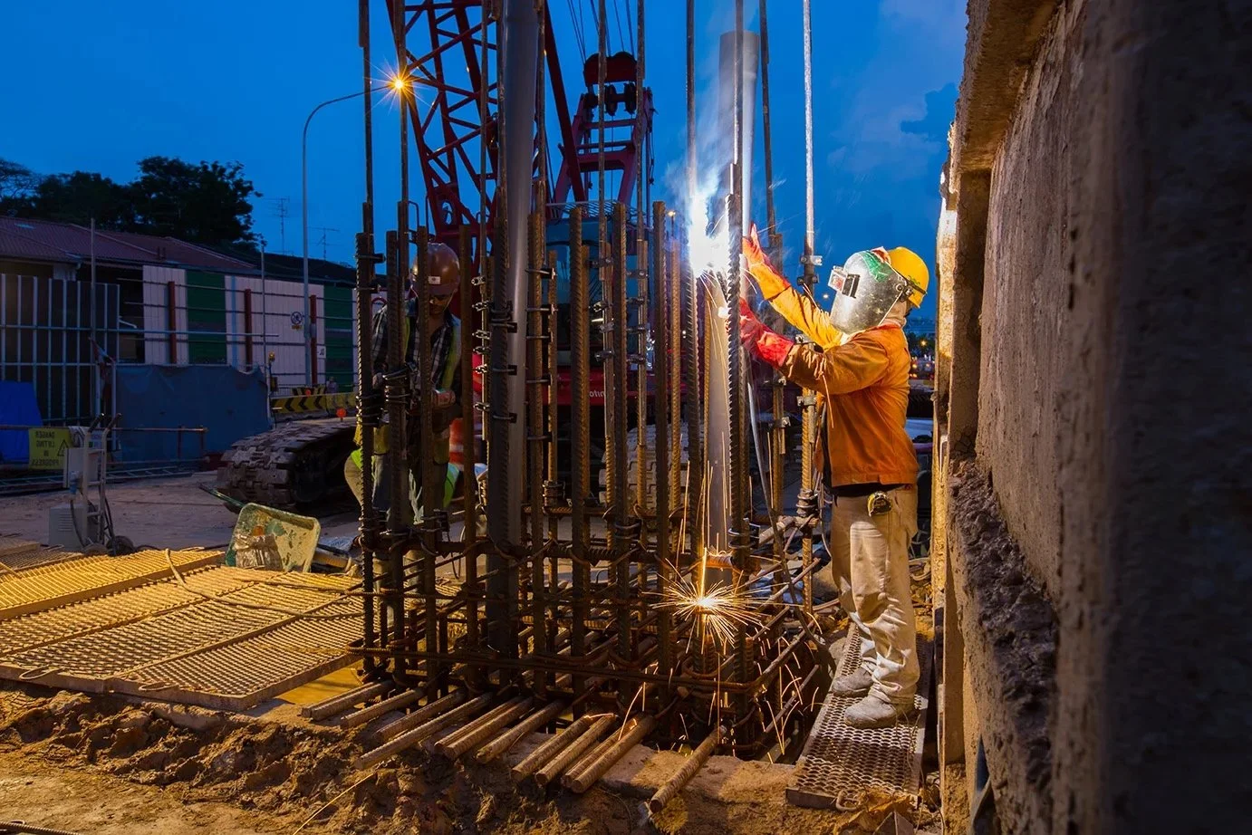 Construction and infrastructure photography in Singapore for active sites, civil works, underground environments, engineering progress, and project documentation. The focus is on photographing real working conditions clearly, from equipment and site activity to milestones, personnel, and structural context.